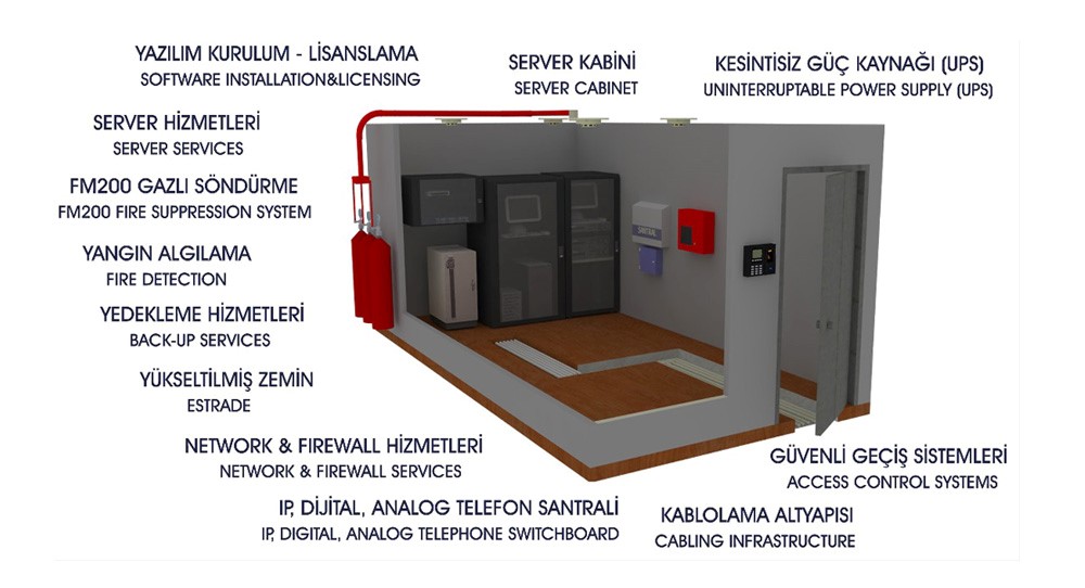 Küçük, orta, büyük şirketler fark etmeksizin her şirketin global iş dünyası ile bağlantı kurup ticaret yapması gereklidir. Bunu sağlarken bir takım donanım ve yazılımlar gereklidir. Bunların bir arada bulunduğu ortama da Sistem Odası denmektedir. Şirketimiz, orta ve büyük ölçekli şirketlerin Server odası ihtiyaçlarını karşılamak üzere yapılanmıştır.